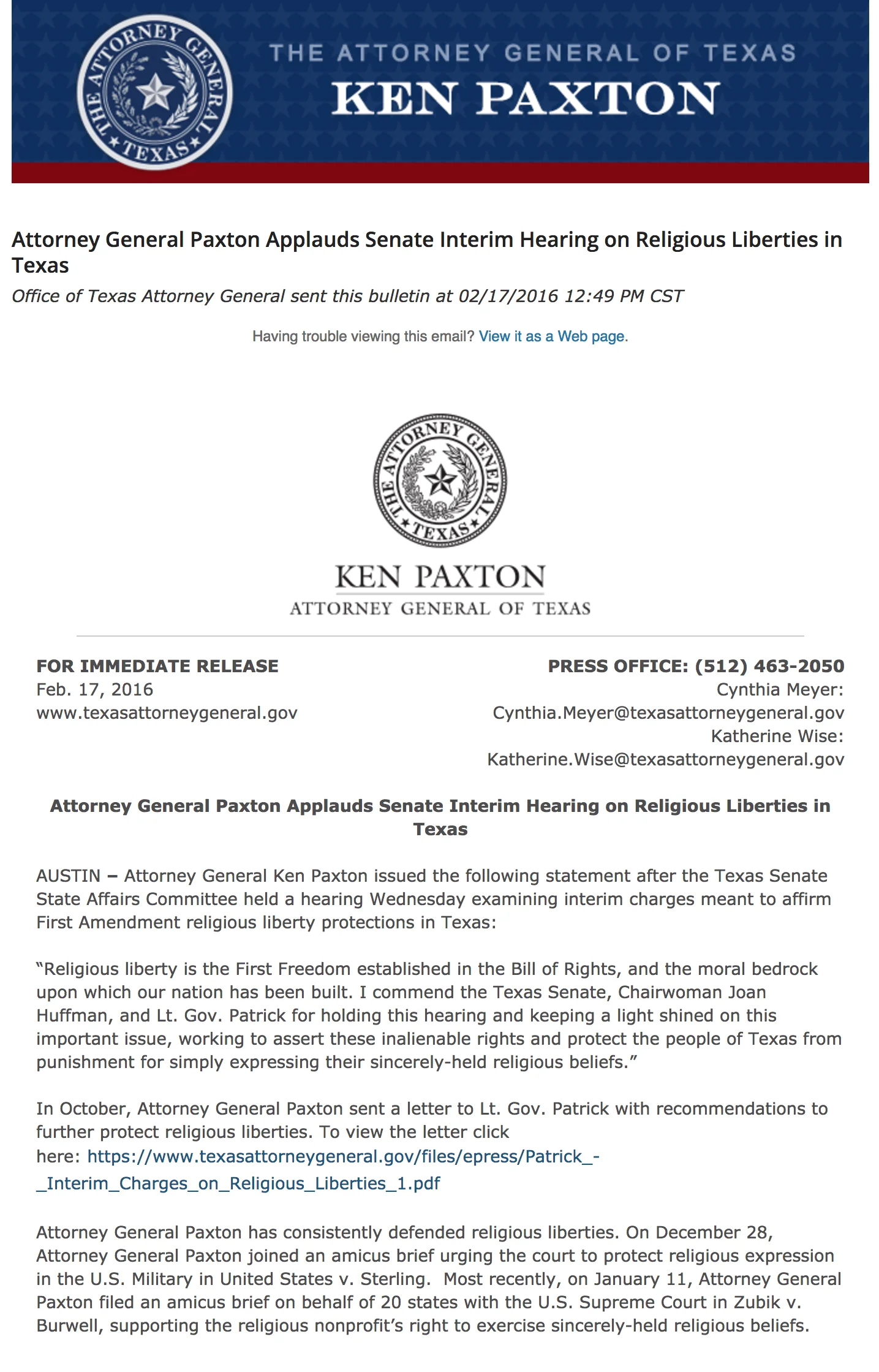 Circa Creative Studios February 17, 2016 Andy Taylor Appears before Texas Senate Defending Religious Liberty Circa Creative Studios February 17, 2016